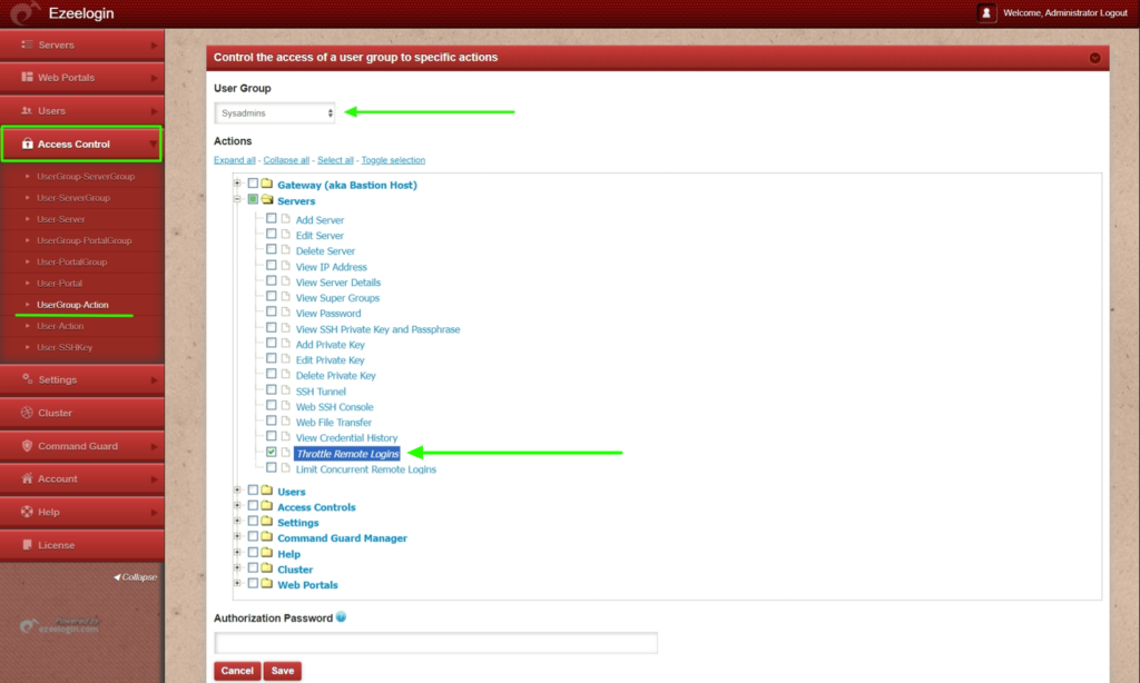 Note: This feature is available from Ezeelogin version 7.38.0. To update your existing Ezeelogin to the latest version, refer to the article. Parallel shell and secure copy to remote server group using Ezeelogin shell feature will not work when ’RTLD’ is enabled. Superadmin user (user created at the time of Ezeelogin installation) is not affected by RLTD.