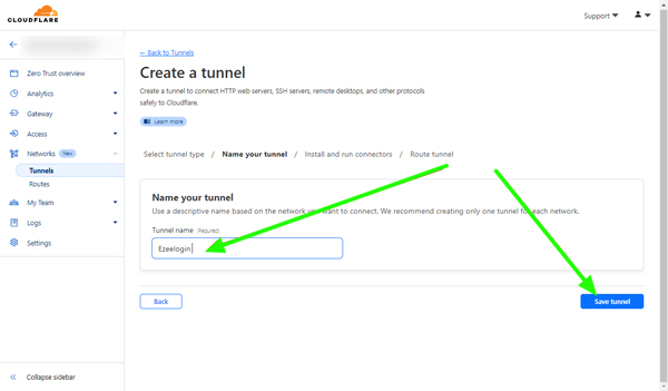 Step 1.4 Name your tunnel and save tunnel