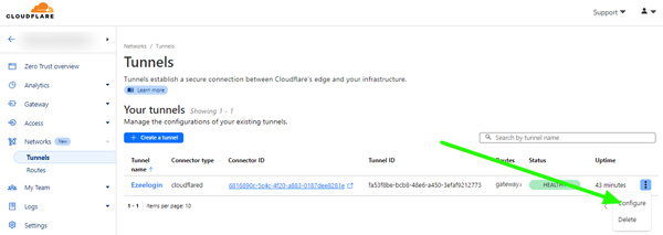 Step 1.2 Navigate to ‘Zero Trust’ -> Network -> Tunnels