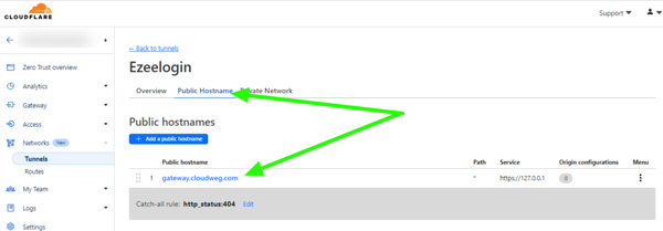 Step 3.3. To view the subdomain, navigate to the dashboard, then go to Configure > Public Hostname.